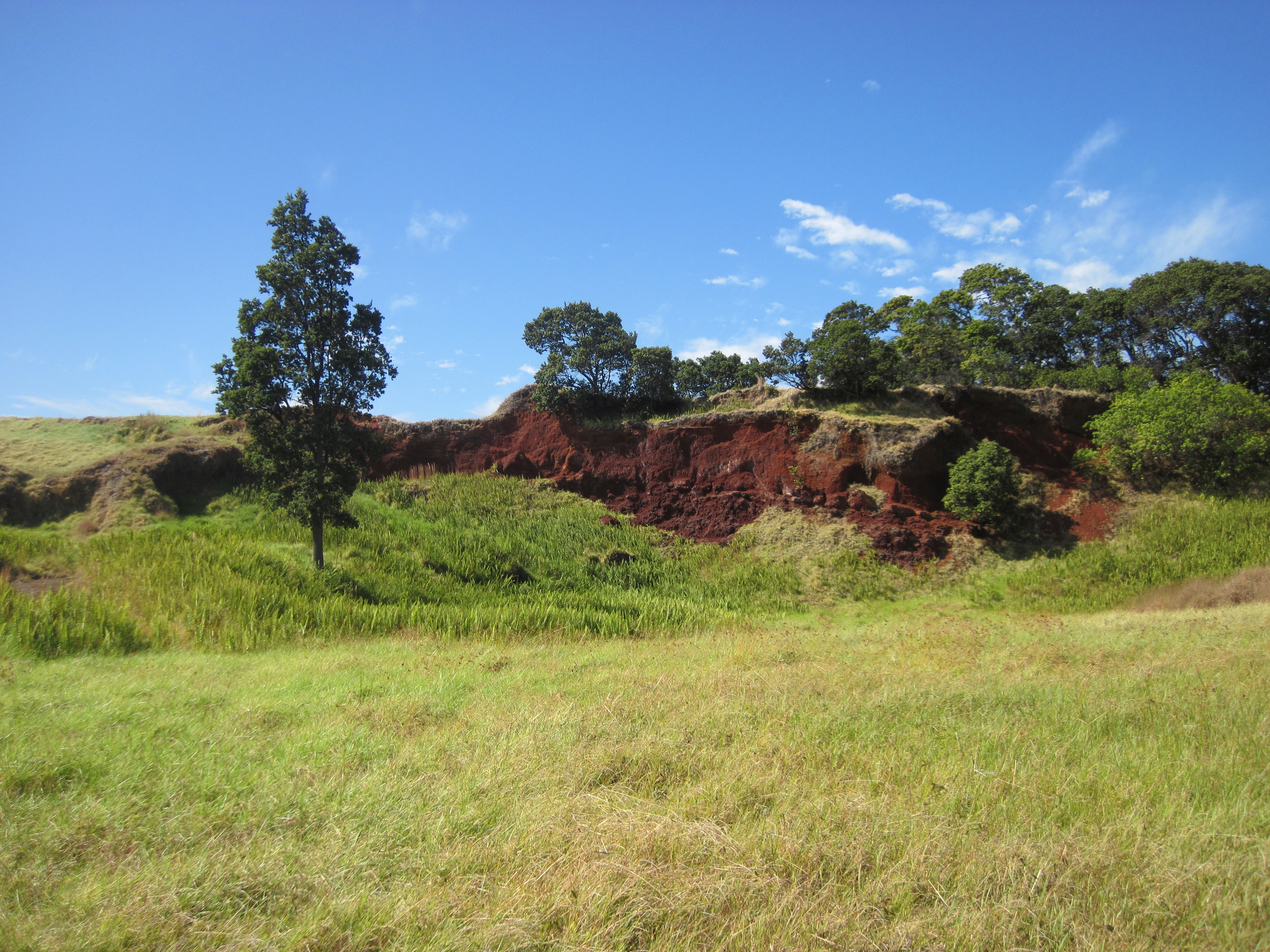 The students were excited to explore the area! The ranch has the appearance of a mystical movie set. Ancient Ohia Le’hua and Koa trees dot the landscape of deep flowing grass. Collapsed lava tubes give the landscape a rolling feel of mounds and valleys. After unloading the vehicles, the group began the short 1.5 mile hike to the crater while discussing the geological history of the land.